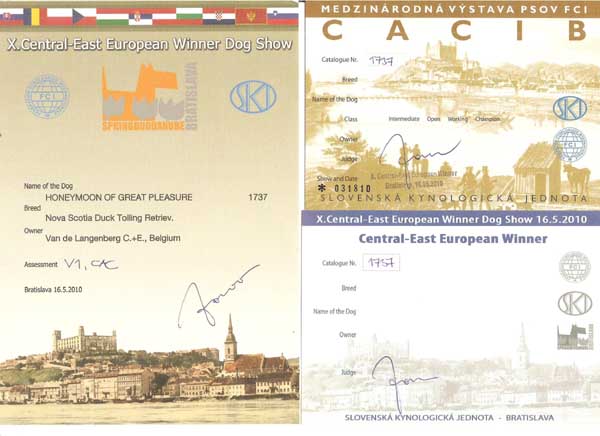 | 06/11/2005 | Cumin (Chantta of Great Pleasure) werd op de Clubshow van de Slovakische Retriever Club Best in Show !!!! |
